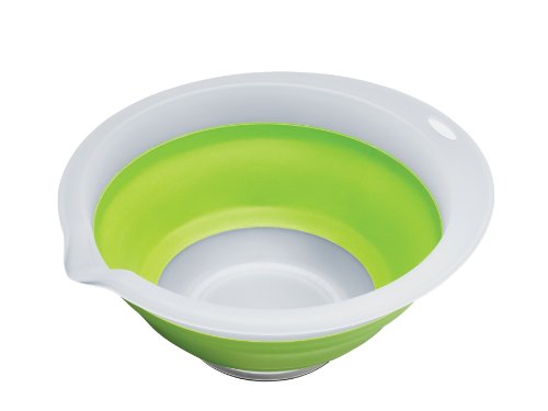Progressive International is your source for the widest range of functional, inventive, and fun kitchen tools and great ideas put into practice. Our in-house designers spend hours in the kitchen coming up with ways to improve on a variety of traditional tasks and tools. Established in 1973, our commitment to quality and service allows us to offer a broad selection of quality kitchenware and other household products. This Progressive 3 quart green collapsible mixing bowl has an innovative design that folds flat for compact storage and cleaning. Save approximately 2/3 more space when storing. This mixing bowl has a spout for easy pouring and a non-skid base. It's great for mixing, mashing, beating, whisking and more. Expand to use, collapse to store and it's safe to clean in the dishwasher.
